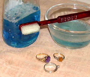 mild dish soap and warm water, or clean in an at-home ultrasonic unit.